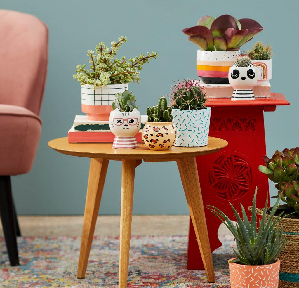 Je ontdekt hier veel kleuren, en ze mogen lekker fel zijn. Maar een poederachtige peach of een zachte zeegroen zijn ook van de partij. En samen mixen, fel en zacht, dat is helemaal prachtig. Dessins en patronen zijn spannend en uitbundig, vaak met een dikke knipoog. Bloempotten zijn haast een onderdeel van het gezin in de vorm van dieren of gezichten. De afwerking kan zowel mat als glanzend zijn, of allebei natuurlijk. Met dit thema breng je vrolijkheid en een beetje opschudding in het interieur.